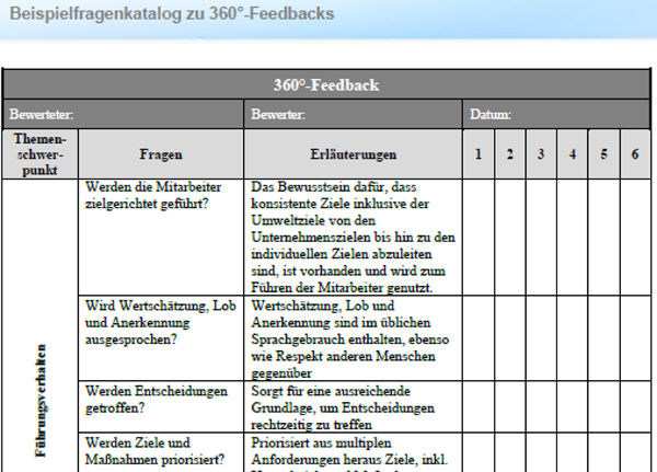 Wie kann der Normforderung nach dem Aufbau von „Bewusstsein” begegnet werden? Dieser Beitrag beschreibt Methode und Einsatz von 360°-Feedbacks zur Mitarbeiterführung, zur Wirksamkeit von Umweltmanagementsystemen und zur individuellen Entwicklung von Mitarbeitern und Teams. Arbeitshilfen: von: |