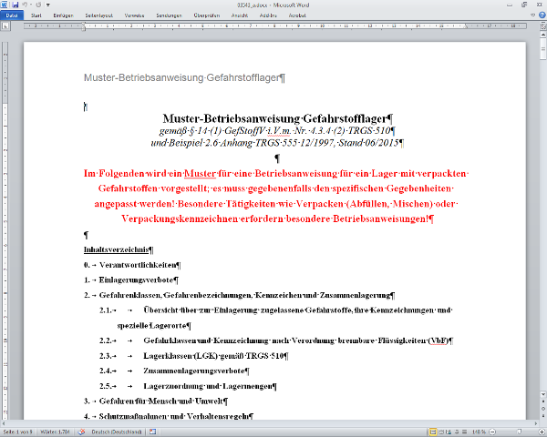 03543 Betriebsanweisung für ein Gefahrstofflager