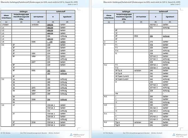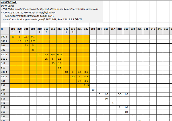 Gefährliche Stoffe, Gemische und bestimmte Erzeugnisse | |||||||||||