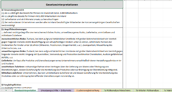 Die diesem Beitrag zum Download angehängte Arbeitshilfe enthält Gesetzesinterpretationen bzgl. der Anforderungen an Unternehmen und Organisationen, einen Vorschlag zur Umsetzung dieser Anforderungen und folgende Beispieldokumente, die Sie individuell anpassen können:[ 05050_a.xlsx]