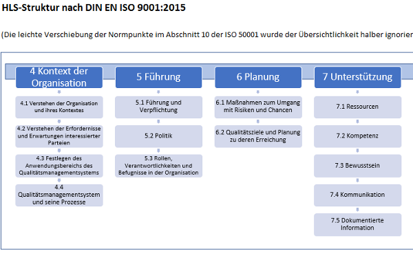 HLS – was bedeutet das überhaupt für den Anwender? Für Managementsystemnormen wurde eine einheitliche und kompatible Struktur eingeführt, die ab Abschnitt 4 wie folgt aussieht: