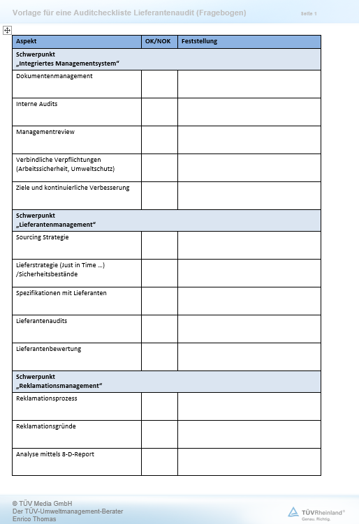 Weder in der Norm ISO 9001 noch der ISO 14001 wird die Durchführung von Lieferantenaudits explizit gefordert (s. Tab. 1). Dennoch wurden mit der letzten Aktualisierung sehr konkrete Anforderungen in die Normen aufgenommen, die indirekt den Lieferantenauditprozess detaillieren und entsprechend zu berücksichtigen sind.