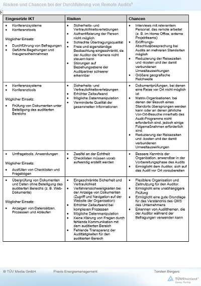 In diesem Beitrag erfahren Sie, was ein Remote Audit ist und welche Arten von Remote Audits es gibt. Sie erhalten darüber hinaus Informationen über die verschiedenen Einsatzmöglichkeiten und die technischen Voraussetzungen. Im Abschnitt „Der Remote-Audit-Prozess” wird erläutert, wie ein Remote Audit geplant, durchgeführt und nachbereitet wird, um bestmöglich die Chancen zu nutzen und Risiken zu vermeiden. Arbeitshilfen: von: |